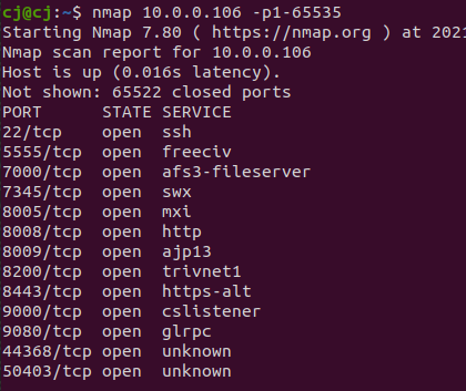 nmap, as great as it is, has a simple “curse” in that only 1000 default ports are scanned. Lets try that scan again with the full port range.