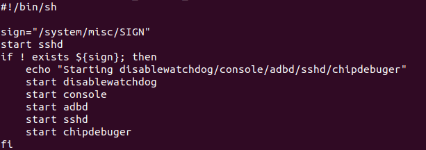 Now, edit the file. Note the line added in before the if of “start sshd” in the image below? Make the changes but watch your line endings! Then, save the file, remount the partition RW, and push the file back and reboot.